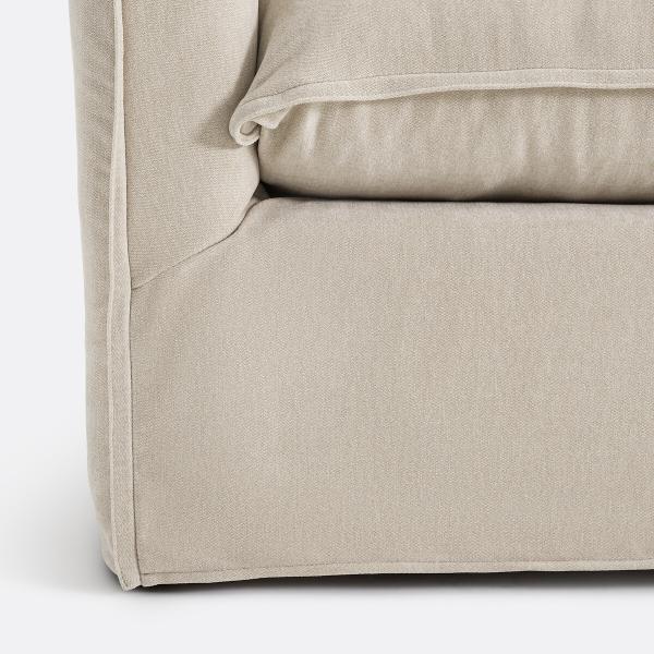- Assise (1 coussin) : mousse polyéther 28 kg/m3 et poche remplie de 65% fibres polyester et de 35% flocons de mousse