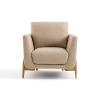 Epuré et design sont les maîtres mots du fauteuil Cejjy. Amateurs en quête de ""beau"", vous apprécierez le détail du bas de caisse légèrement arrondi et souligné d’un piètement en bois apparent…Fabriqué en Europe.