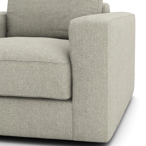 - Assise (1 coussin) : mousse polyuréthane 35 kg/m³ et flocons de fibres polyester