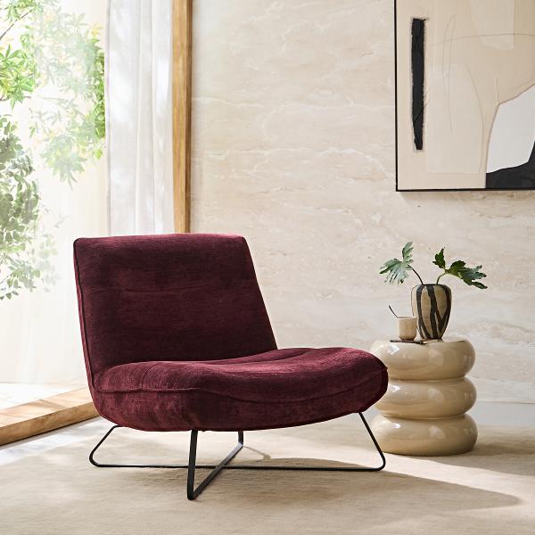 Fauteuil velours, Helma Rouge bordeaux T. Unique