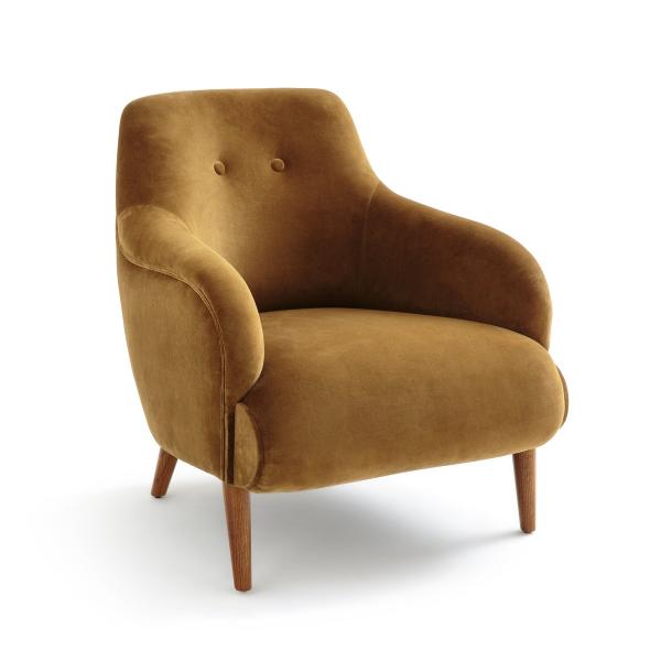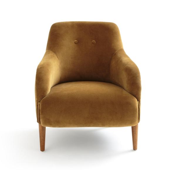 Fauteuil velours, Lipstick Ocre doré T. Unique