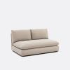- Assise (1 coussin) : mousse polyéther, densité 28 kg/m³ + poche remplie d’un mélange de fibres polyester (65%) et flocons de mousse polyéther (35%) recouverte de ouate polyester
