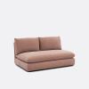 - Assise (1 coussin) : mousse polyéther, densité 28 kg/m³ + poche remplie d’un mélange de fibres polyester (65%) et flocons de mousse polyéther (35%) recouverte de ouate polyester
