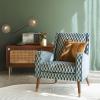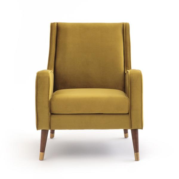 Le fauteuil (Y) : des lignes simples, des pointes de pieds finition laiton, un revêtement souligné par un piping chic et délicat... Entrez dans l'univers design et créatif emprunté au monde esthétique de l'Art Déco !