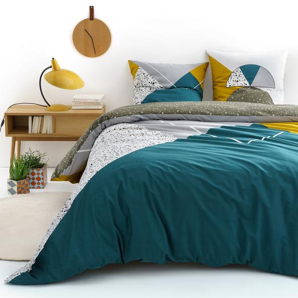 Housse de couette coton, Hilda Canard/moutarde/blanc 260x240 cm