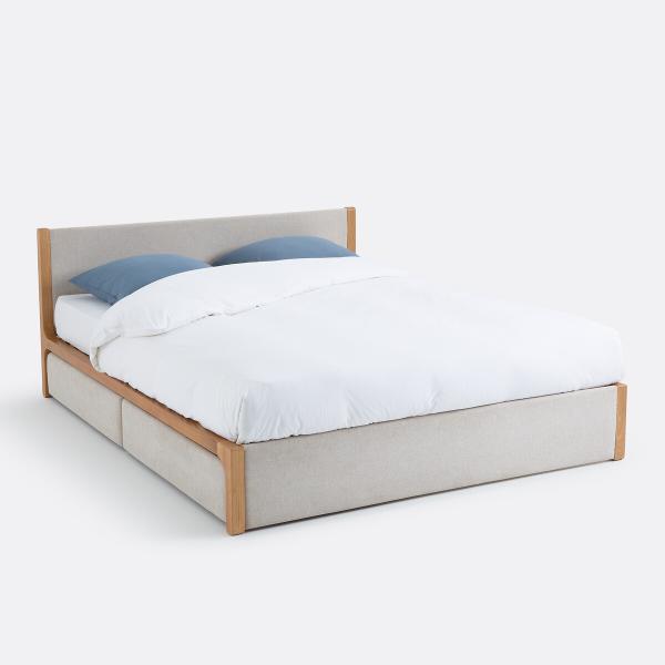 - Tête et pied de lit en frêne et multiplis, garnis de mousse polyuréthane 20 kg/m³.