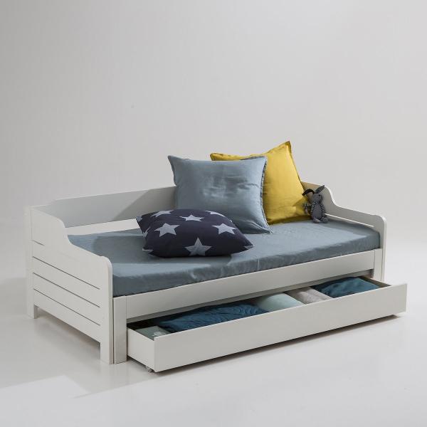 Lit banquette extensible, tiroir, sommier, Grimsby Blanc 90x190 cm