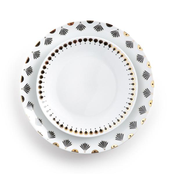 Lot 4 assiettes plates, MELLAH Blanc + imprimé T. Unique