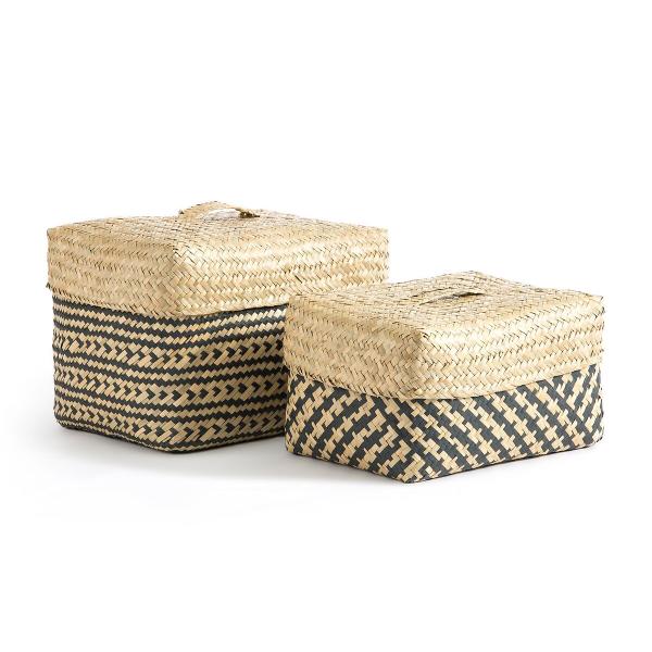 Lot de 2 paniers, Kotak Naturel/noir T. Unique
