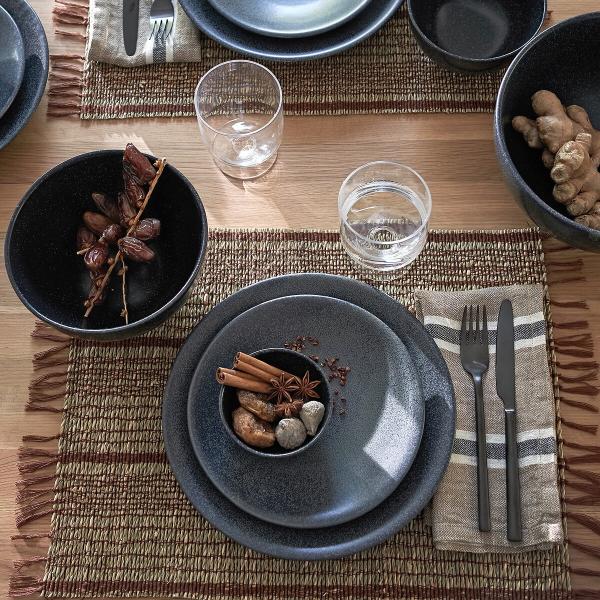 Authentiques et originales. La finition artisanale de la gamme Preto, en grès émaillé réactif, apporte un subtil effet moucheté et des reflets tout particuliers.Lors de la cuisson, les émaux réagissent à la chaleur pour sortir des pièces aux tonalités uniques et donner du cachet à votre table.