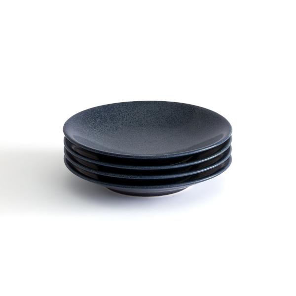 Lot de 4 assiettes à dessert grès émaillé, Preto Gris anthracite T. Unique