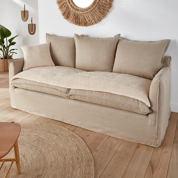 Matelas d'assise en velours, Nour Ecru 60x180 cm
