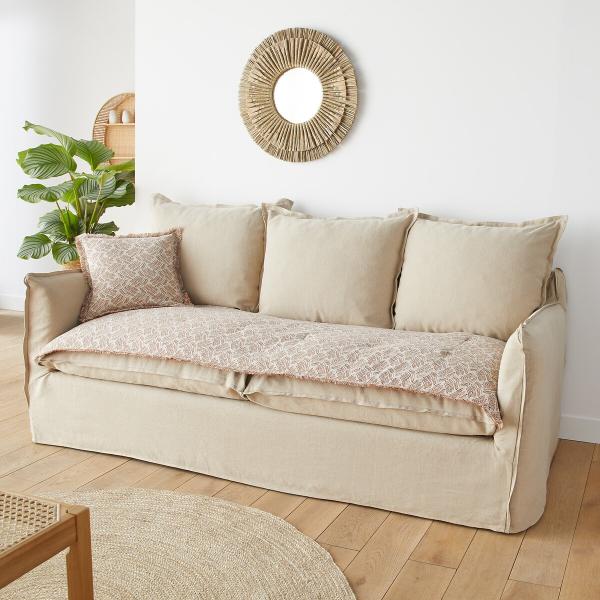 Matelas d'assise lin/coton, Orella Naturel/marron 60x180 cm