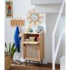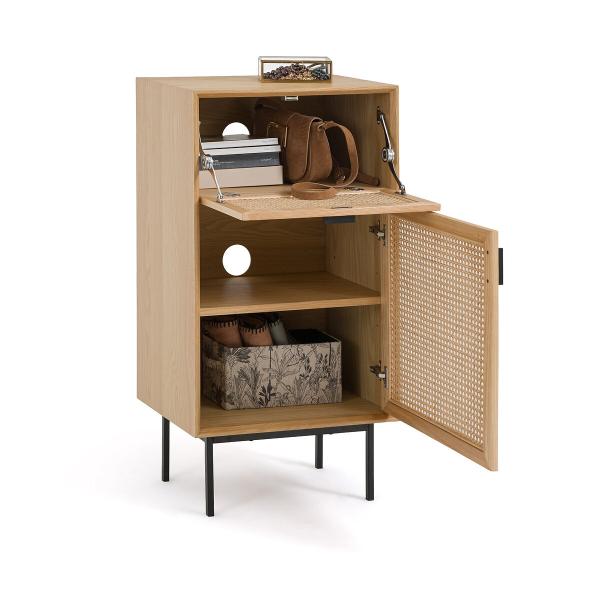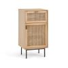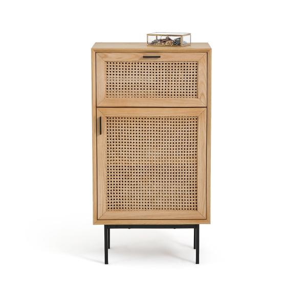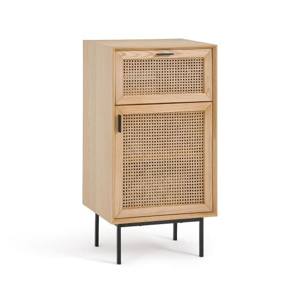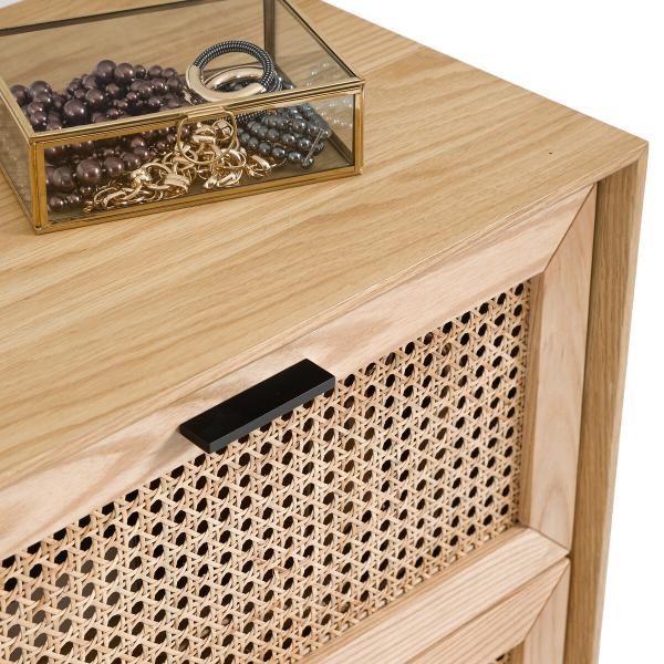 - Façades des portes en frêne massif finition vernis nitrocellulosique et cannage de rotin