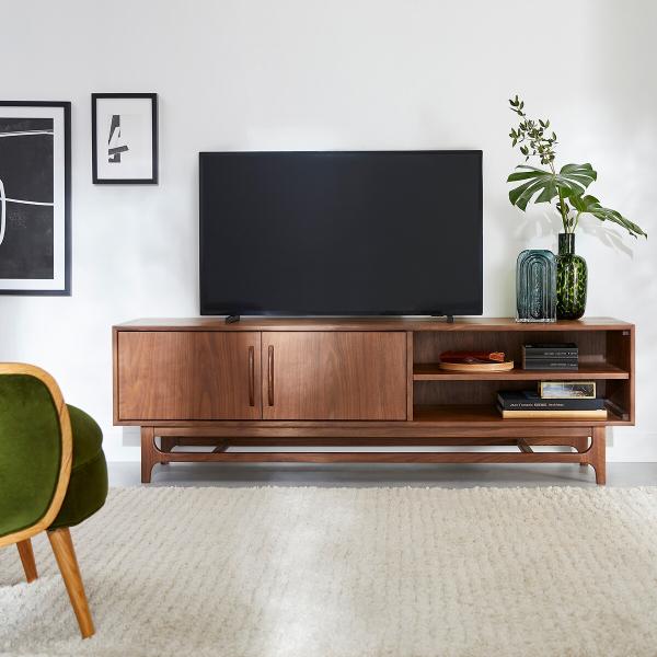Le charme du vintage, l’élégance du noyer et des finitions soignées. Le meuble TV Larsen allie design et fonctionnalité, et signe la déco. Il vous offre un grand potentiel de rangement. Une création La Redoute Intérieurs.