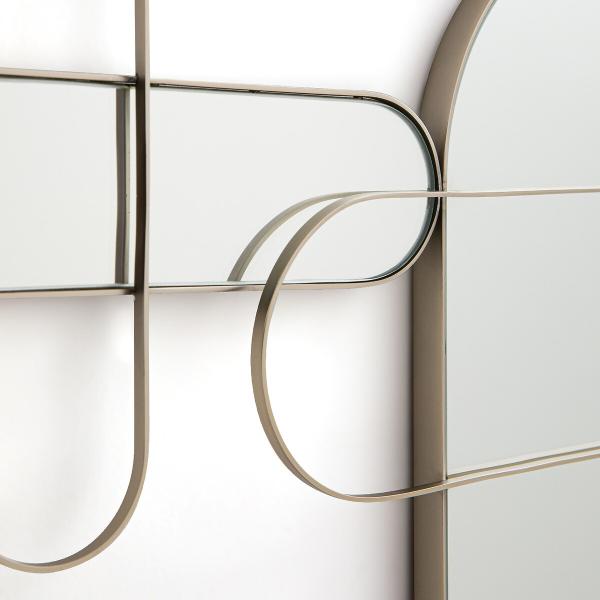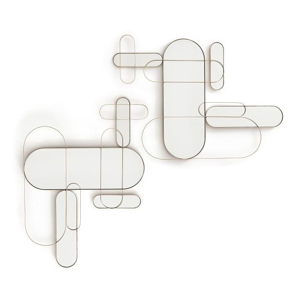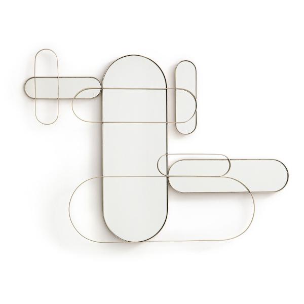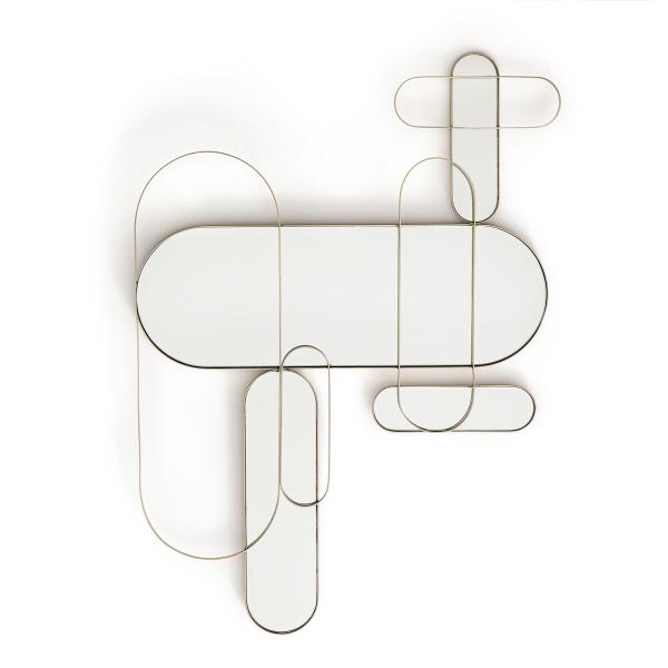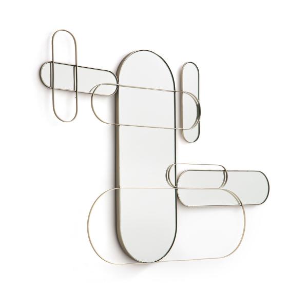 Le miroir mural Euclide affiche un graphisme inspiré des années 1970. Il se compose de miroirs soudés dans une armature métallique à la finition nickel satiné.Description