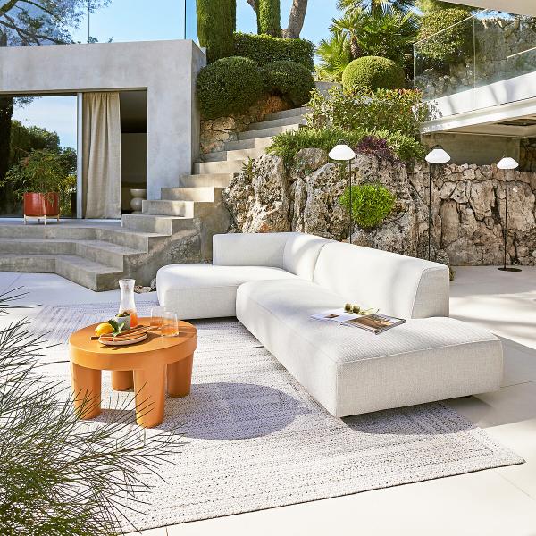 Contrastes de courbes et d’angles droits. Leki est une méridienne de jardin qui conjugue confort et design.Votre canapé intérieur/extérieur a été soigneusement conçu avec des matériaux prévus pour une utilisation en milieu extérieur sec ou en atmosphère humide, parfait sous une pergola ou près de votre piscine intérieure. Son revêtement a été choisi pour conserver sa couleur en contact direct avec les rayons du soleil.