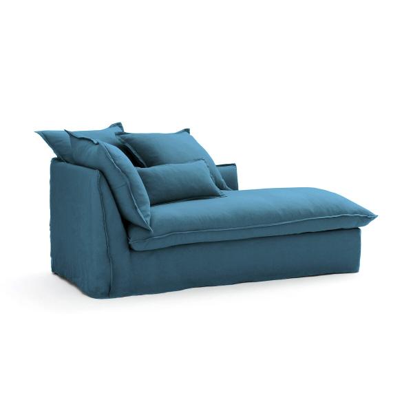 Méridienne lin froissé, bultex, Odna Bleu paon Droit