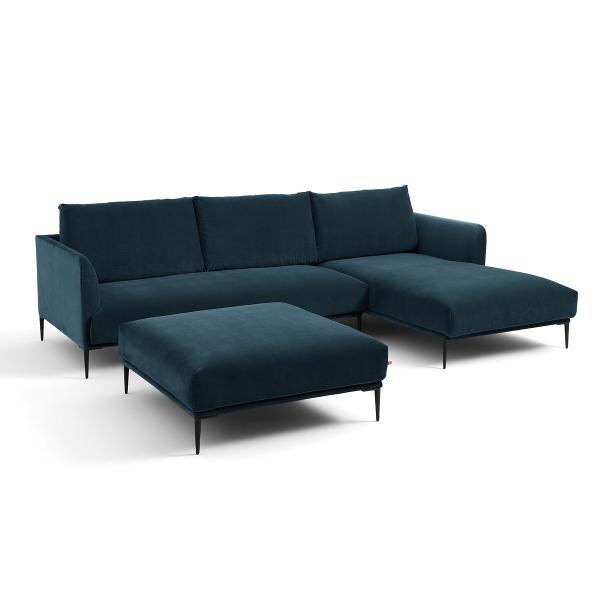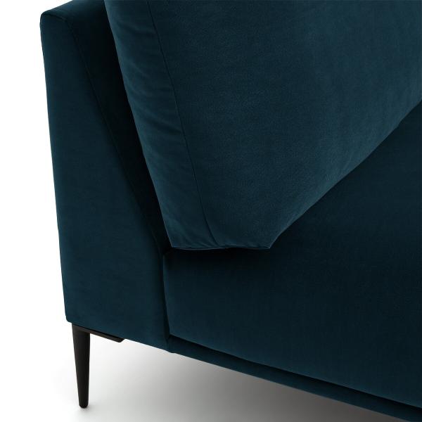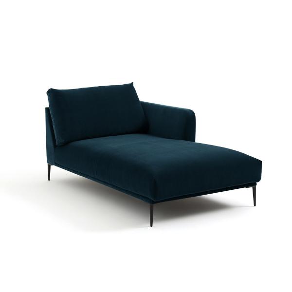 Méridienne velours, Oscar design E.Gallina Bleu paon Gauche