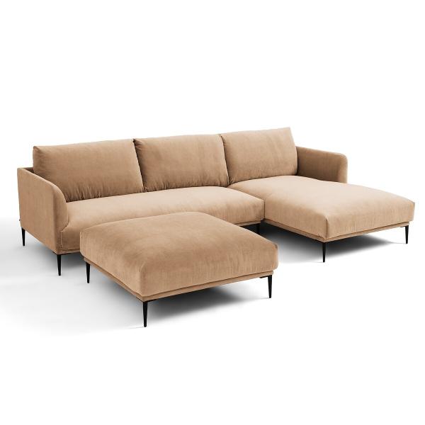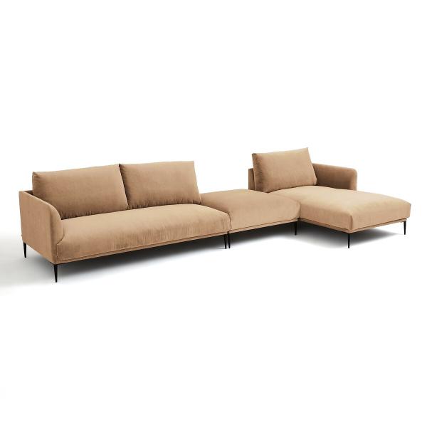 Méridienne velours stonewashed, Oscar design E.Gal Ficelle Droit
