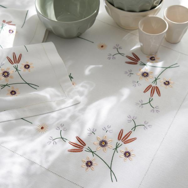 Nappe brodée coton/lin, Martha Blanc 150x150 cm