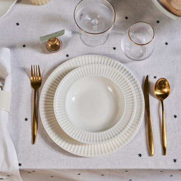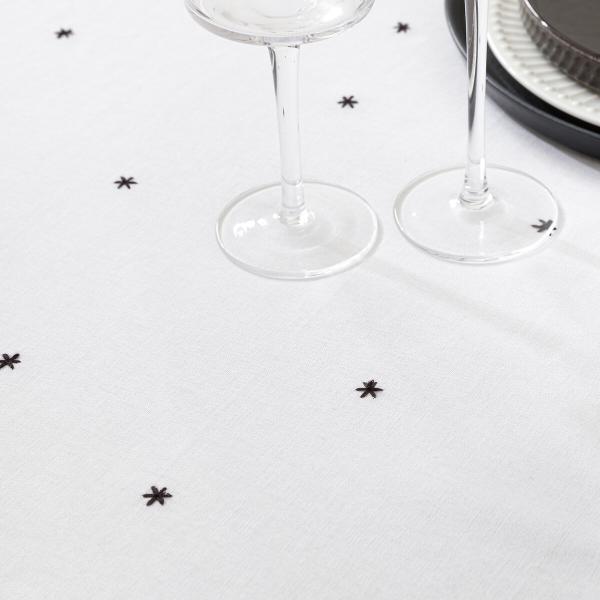 Nappe brodée lin/coton lavé, Festive Blanc 150x300 cm