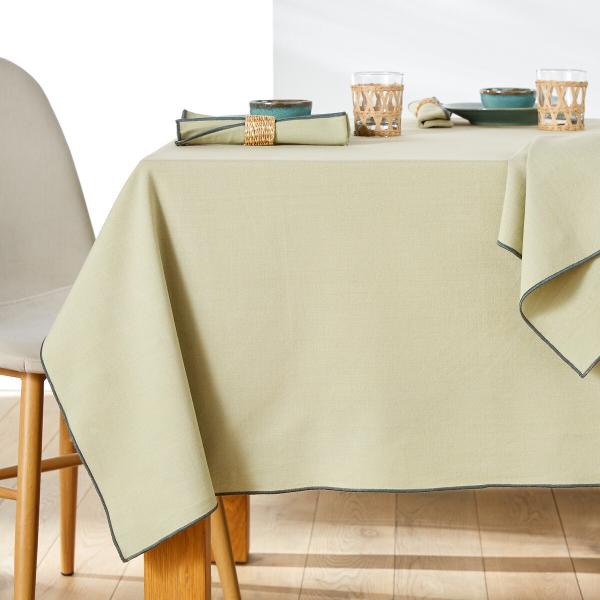 Nappe coton lavé, Tampa Vert thé 150x300 cm