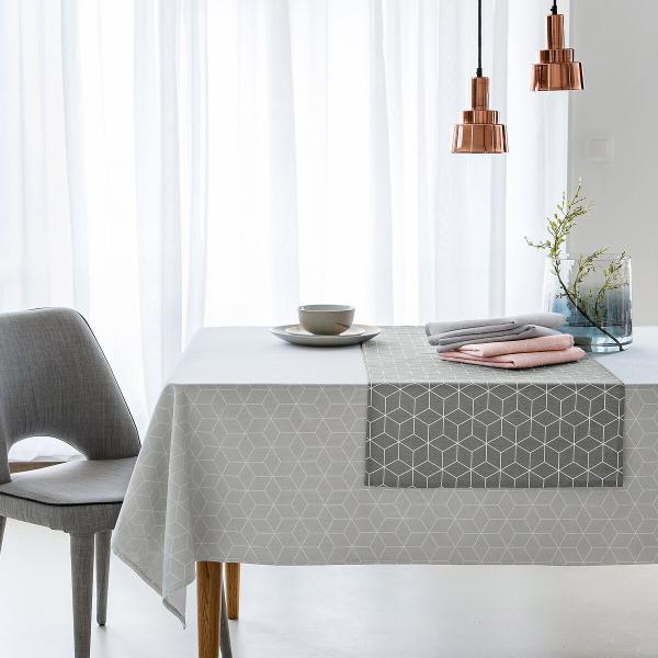 La nappe imprimée en polycoton Diamond au bel aspect mat, anti-tache, esprit scandinave.Super facile à vivre : un simple coup d'éponge, et la voilà comme neuve !