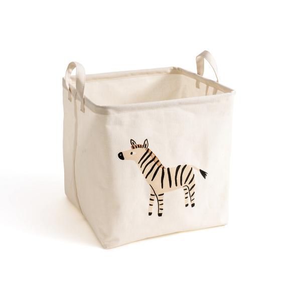 Panier cube motif zèbre, Junglito Ecru T. Unique