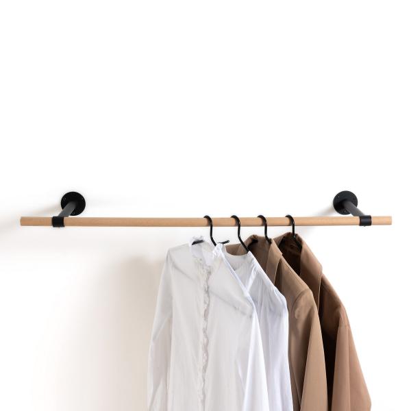 La barre de penderie Kane permet de suspendre et de ranger vos vêtements sur cintres en apportant une touche déco. Sobre et pratique.