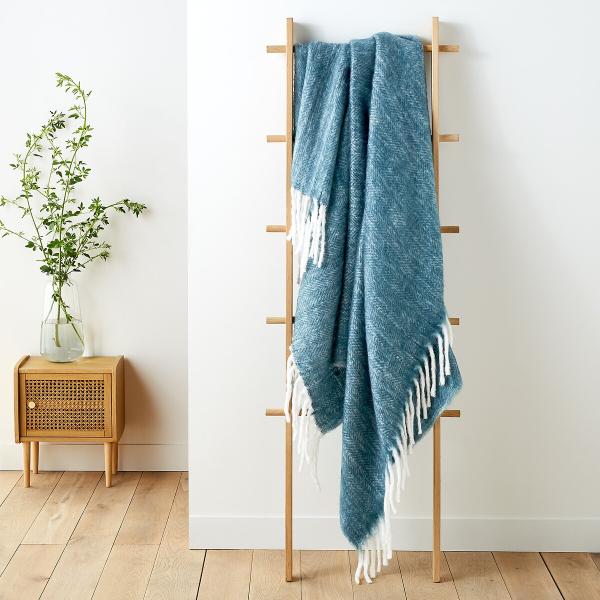 Plaid chevrons, Basalm Bleu pétrole T. Unique