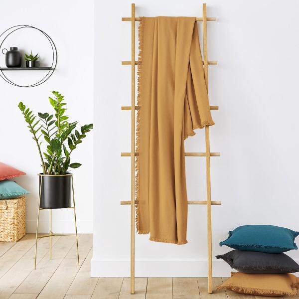 Plaid coton frangé, Panama Ocre 180x230 cm