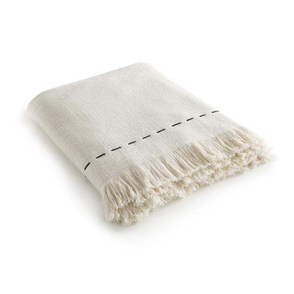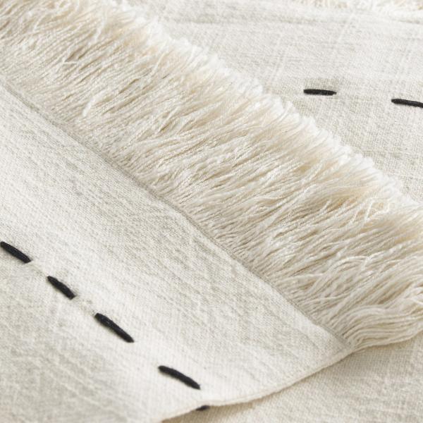 Plaid doublé brodé main, Girandole Ecru/noir 130x170 cm