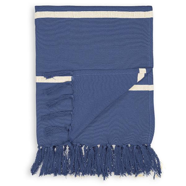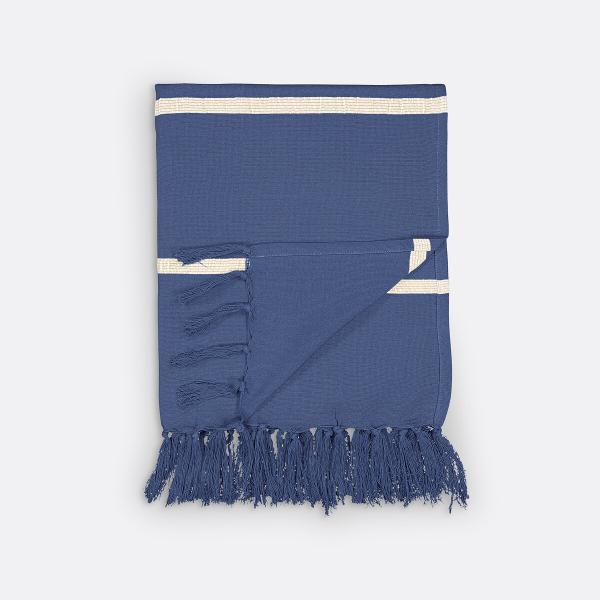 Plaid frangé, Nedo Bleu orient/écru 140x200 cm