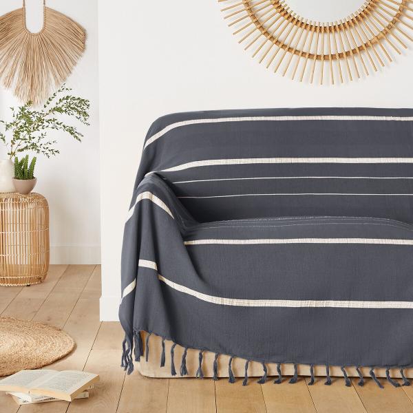Plaid frangé, Nedo Gris anthracite/écru 180x230 cm