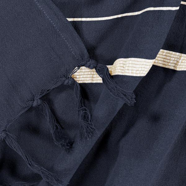 Plaid frangé rayé coton, Nedo Marine/écru 230x250 cm