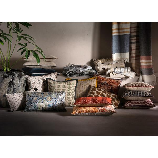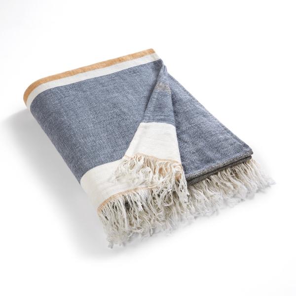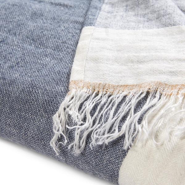 Plaid lin Raya Bleu/curcuma/noir/écru 130x170 cm