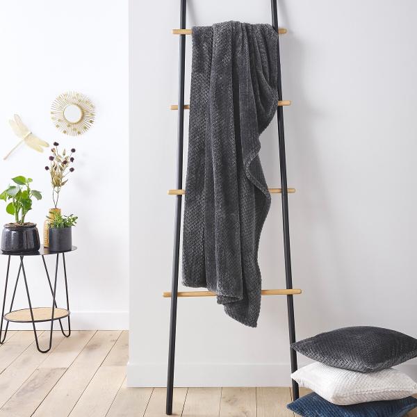Plaid polaire gaufré, Puntos Gris anthracite T. Unique