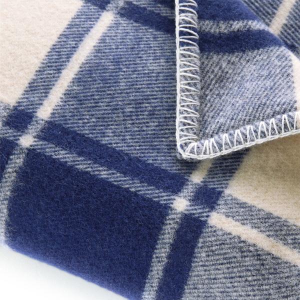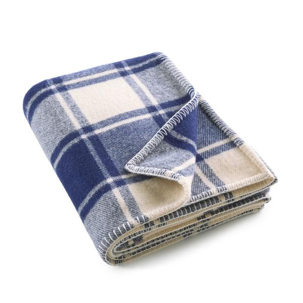 Plaid pure laine, Kaspi Ecru/bleu 130x200cm