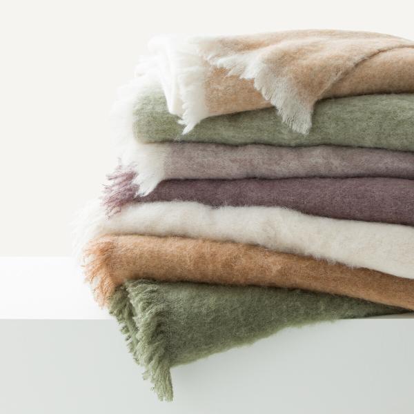 Plaid uni, laine et polyamide, Mantas Figue 130x180cm