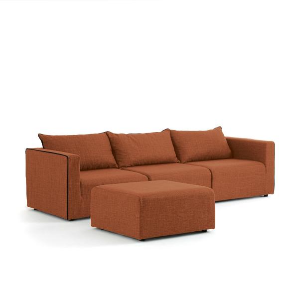Pouf tissu texturé, Vlad Noir/Terracotta T. Unique