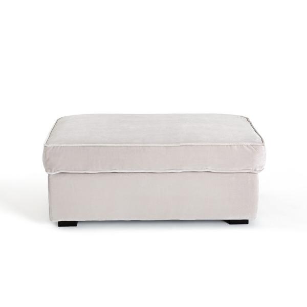 Repose-pieds Camille, toile velours.Fabrication française.Une assise très profonde et une ligne contemporaine au confort particulièrement douillet.