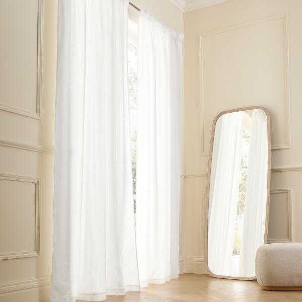 Rideau lin lavé ruflettes, Private Blanc 140x320 cm