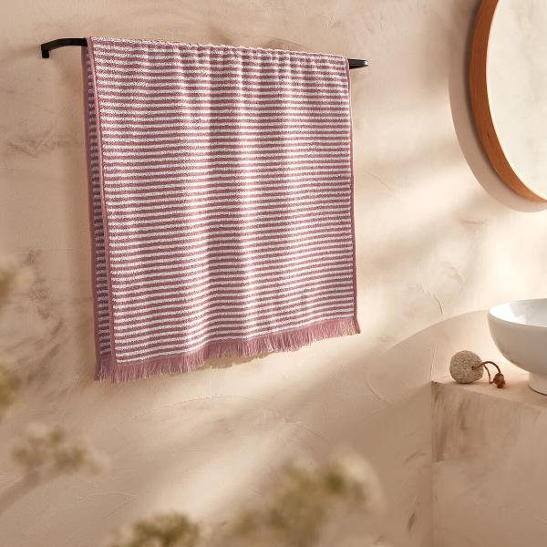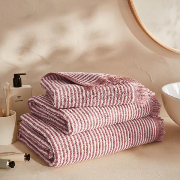Serviette éponge rayée MALO Rose blush 50x100 cm