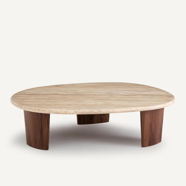 Les courbes sont organiques : la table basse Guimel reprend la forme d’un galet. Et, elle donne libre cours à la matière, le travertin - une pierre aux tons doux, extraite en Turquie.Unique, Guimel est un meuble exclusif dessiné pour AMPM.