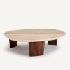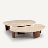 - Plateau en travertin, une pierre originaire de Turquie, chaque pièce est unique. En effet, les marbrures et aspérités peuvent varier d'une table à l'autre.