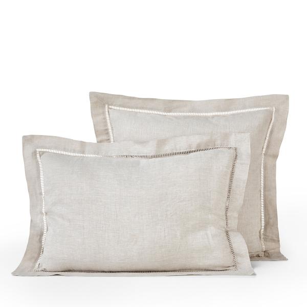 Taie d'oreiller en pur lin lavé immaculé rehaussé d'une délicate finition jour échelle dans l'esprit du beau linge d'autrefois.