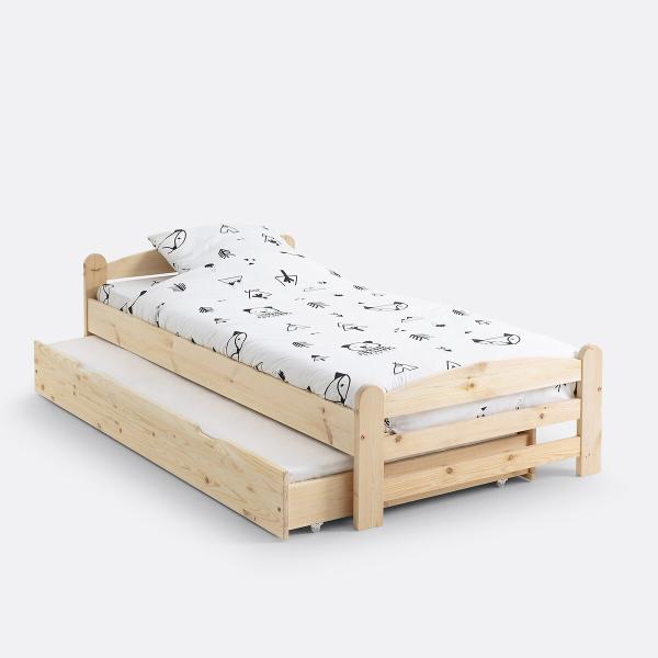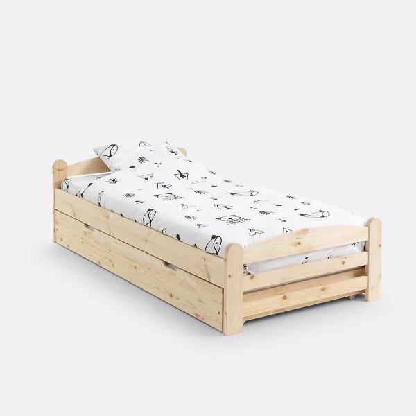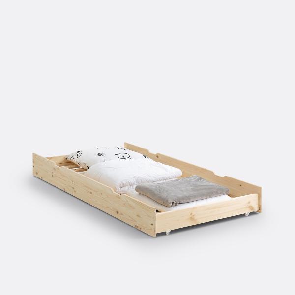 Tiroir lit en pin massif, Loan Bois clair brut T. Unique