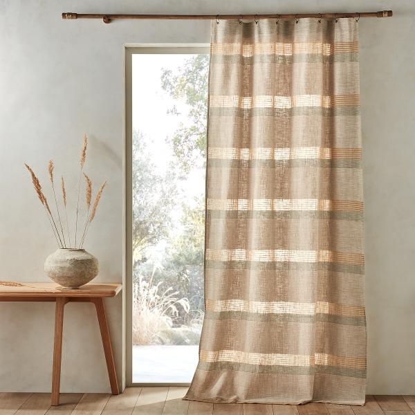 Voilage coton/lin Poésia Naturel/bronze/vert de gris 140x220 cm