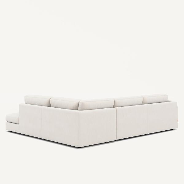 - Assise (4 coussins) : mousse polyuréthane 35 et 23 kg/m³ et percale garnie de plumes d'oie et fibres polyester